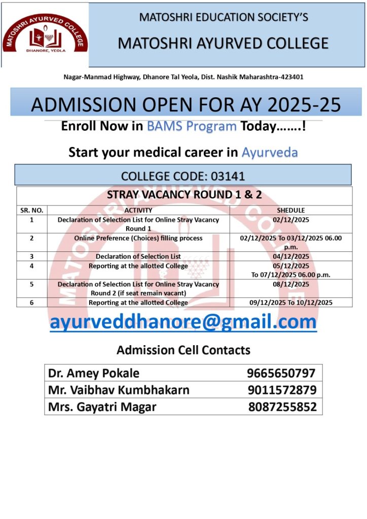 Welcome to Matoshri Ayurved College and Hospital, Dhanore
