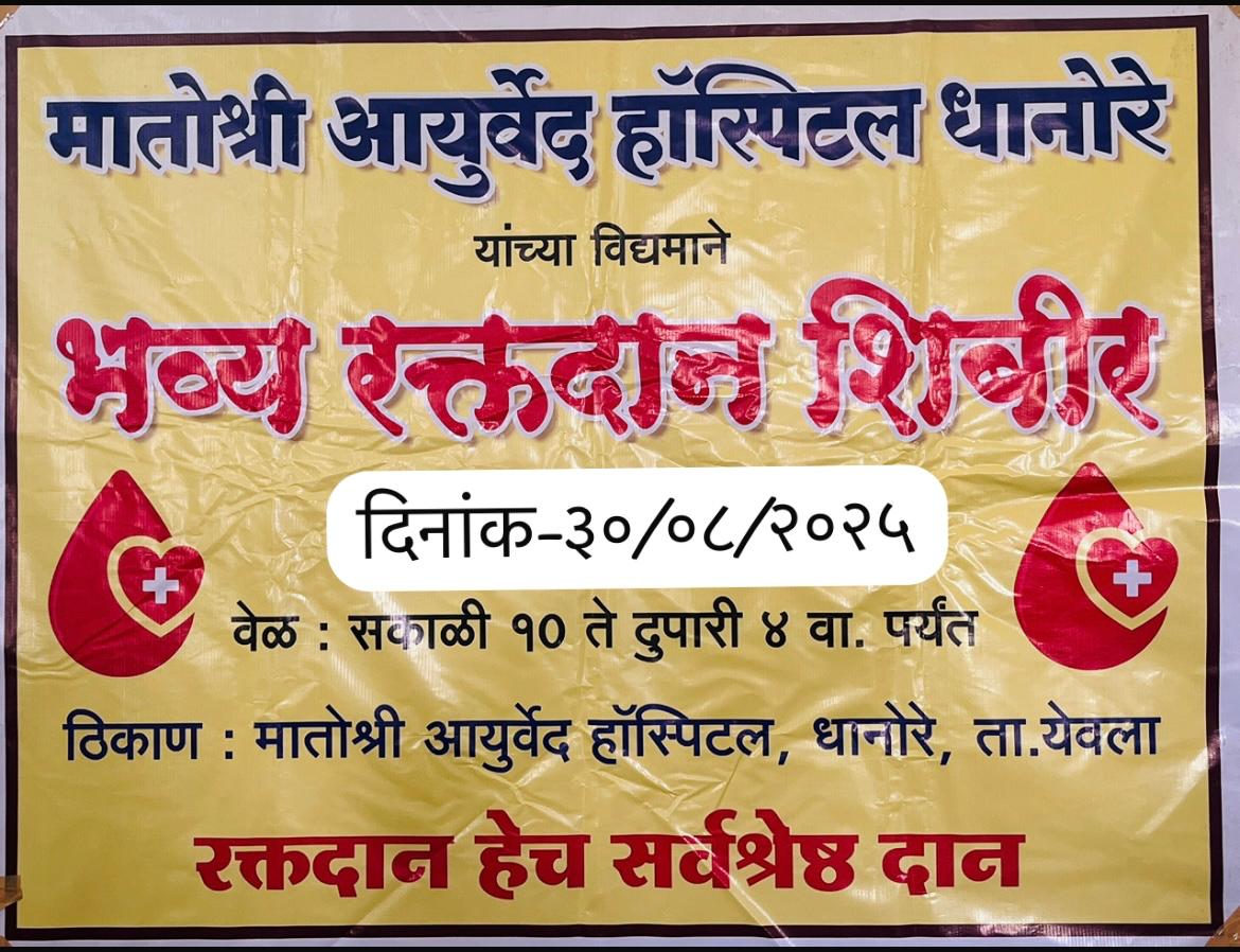 आयोजक: मातोश्री आयुर्वेद महाविद्यालय व रुग्णालय,धानोरे, ता. येवला
