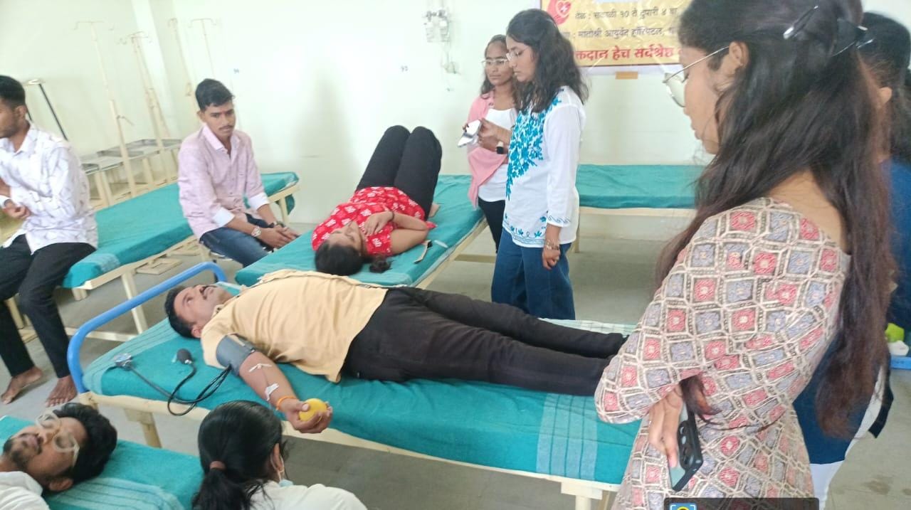 गणेश चतुर्थीच्या शुभप्रसंगी, मातोश्री आयुर्वेद महाविद्यालय व रुग्णालय, धानोरे यांच्या वतीने ३० ऑगस्ट २०२५ रोजी रक्तदान शिबिराचे यशस्वी आयोजन करण्यात आले. हे शिबिर संजीवनी ब्लड बँक, कोपरगाव यांच्या सहकार्याने सकाळी १०:०० ते दुपारी ३:०० या वेळेत रुग्णालयाच्या प्रांगणात आयोजित करण्यात आले होते.